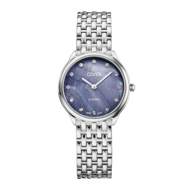 Дамски Часовник Cover CO227.02 Cover CO227.02 от колекция Eternal Pearl e дамски швейцарски автоматичен часовник със син циферблат с индекси с диаманти, стъкло сапфир кристал, сребрист  корпус от неръждаема стомана  с диаметър 28 mm и сребриста  верижка, изработена от неръждаема стомана. Моделът е с 5 ATM водоустойчивост и механизъм Ronda 762 с функции Час, Минути. Всички часовници Cover са с 5 години гаранция.