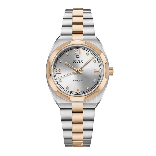 Дамски Часовник Cover CO228.06 Cover CO228.06 от колекция Urban Muse e дамски швейцарски автоматичен часовник със сребрист циферблат с индекси с диаманти, стъкло сапфир кристал, двуцветен  корпус от неръждаема стомана  с диаметър 32 mm и двуцветна  верижка, изработена от неръждаема стомана. Моделът е с 5 ATM водоустойчивост и механизъм Ronda 763 с функции Час, Минути, Секунди. Всички часовници Cover са с 5 години гаранция.