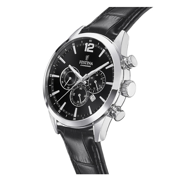 Festina F20542/5 – Мъжки хронограф с черна кожена каишка от колекция Chronograph