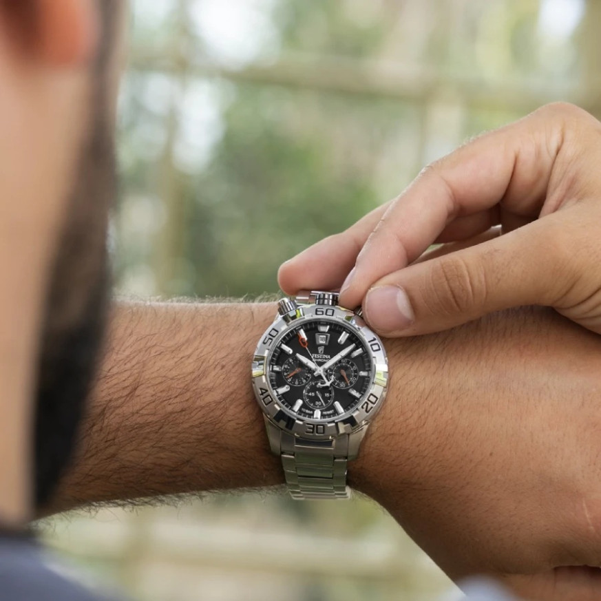 Часовник Festina F20743/6 – Мъжки спортен модел с черен циферблат и стоманена верижка от колекция The Originals