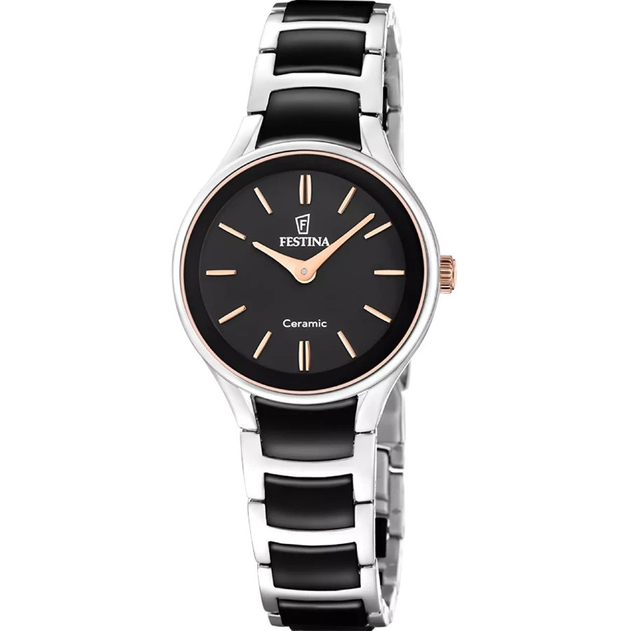 Часовник Festina F20752/7 – Дамски керамичен модел с розово злато и черен циферблат от колекция Ceramic