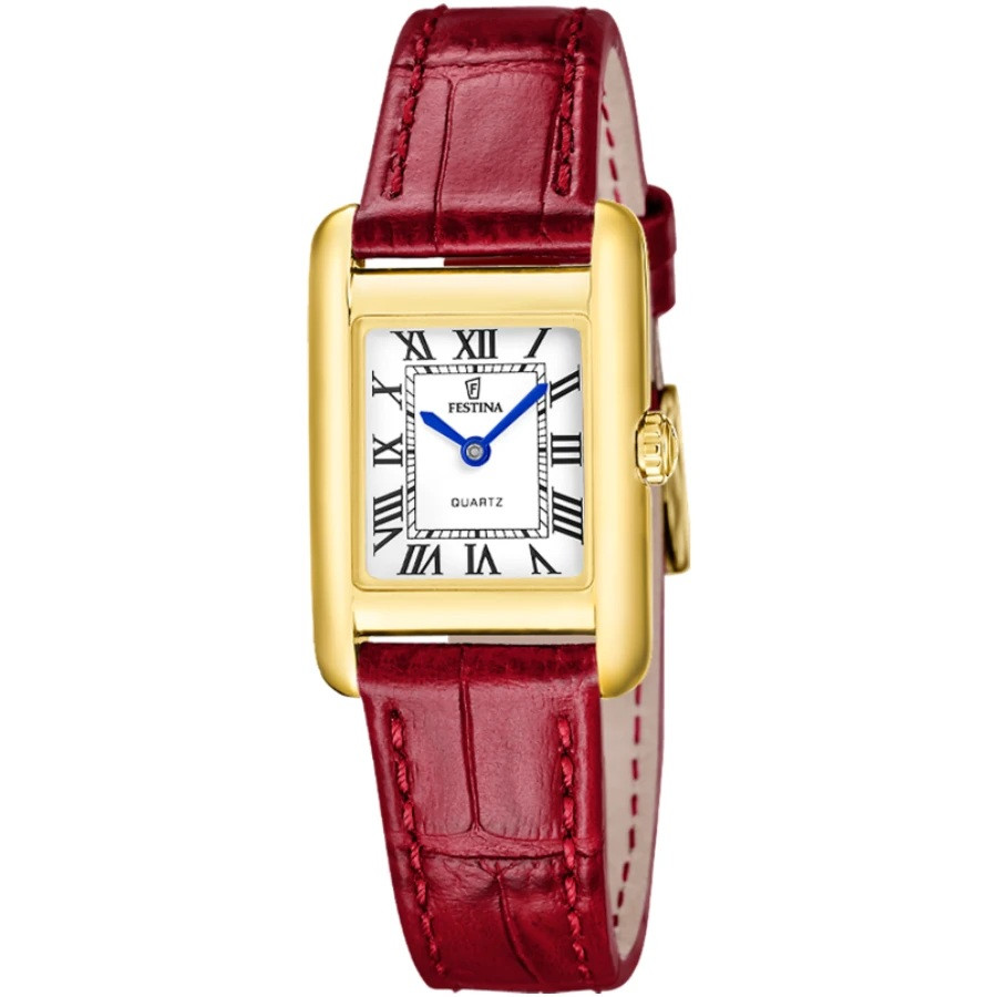 Часовник Festina F20774/1 – Дамски елегантен модел със златно покритие и червена кожена каишка от колекция On The Square