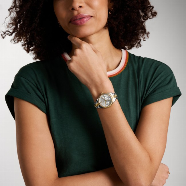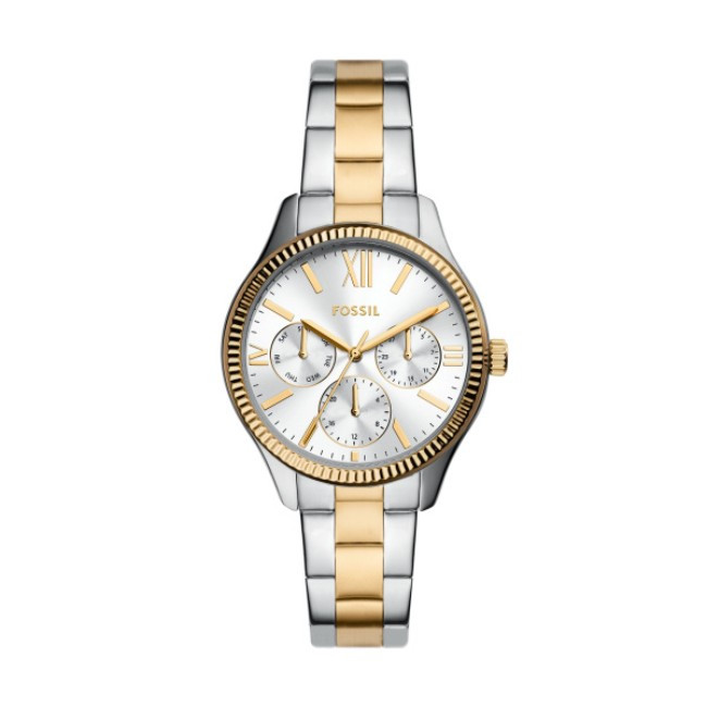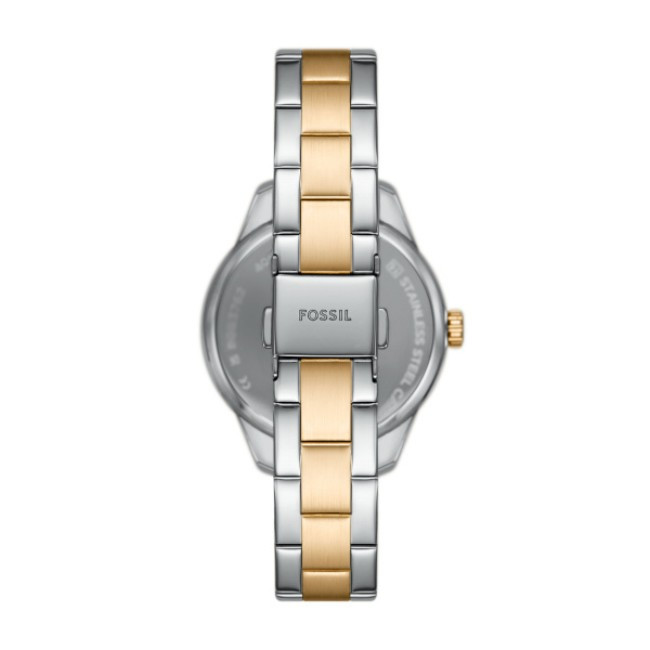 Дамски Часовник Fossil BQW3762   Fossil BQW3762 от колекция Rye e дамски кварцов часовник със сребрист кръгъл циферблат, сребрист корпус от сплав с диаметър 36 mm и двуцветна верижка 16 mm, изработена от неръждаема стомана.