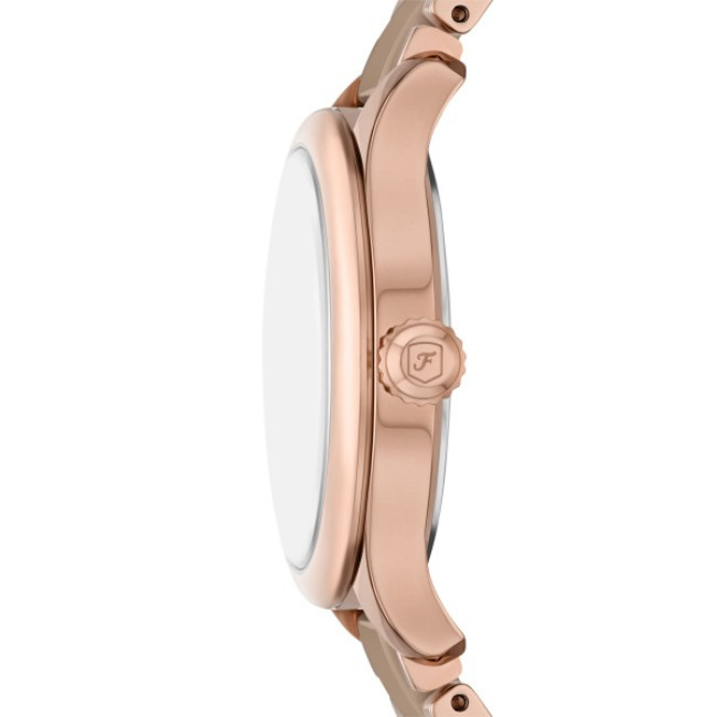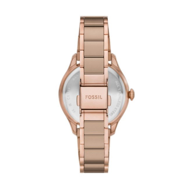 Дамски Часовник Fossil CE1133   Fossil CE1133 от колекция Gilmore e дамски кварцов часовник с кафяв кръгъл циферблат, розовозлатист корпус от неръждаема стомана с диаметър 38 mm и розовозлатиста каишка 18 mm, изработена от микс.