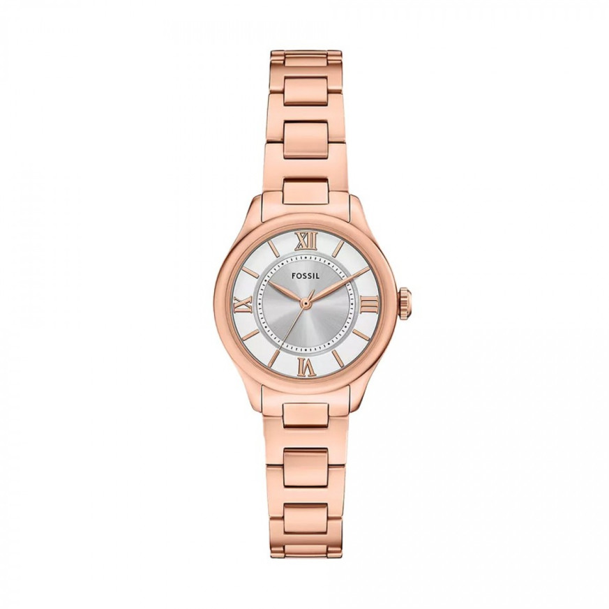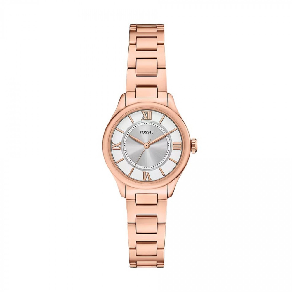 Дамски Часовник Fossil ES5420   Fossil ES5420 от колекция Gilmore e дамски кварцов часовник със сребрист кръгъл циферблат, розовозлатист корпус от неръждаема стомана с диаметър 28 mm и розовозлатиста верижка 14 mm, изработена от неръждаема стомана.