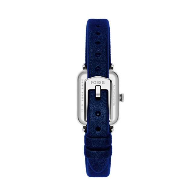 Дамски Часовник Fossil ES5436   Fossil ES5436 от колекция Raquel e дамски кварцов часовник със сребрист правоъгълен, north-south циферблат, сребрист корпус от неръждаема стомана с диаметър LESS THAN 22 mm и синя каишка 10 mm, изработена от плат.