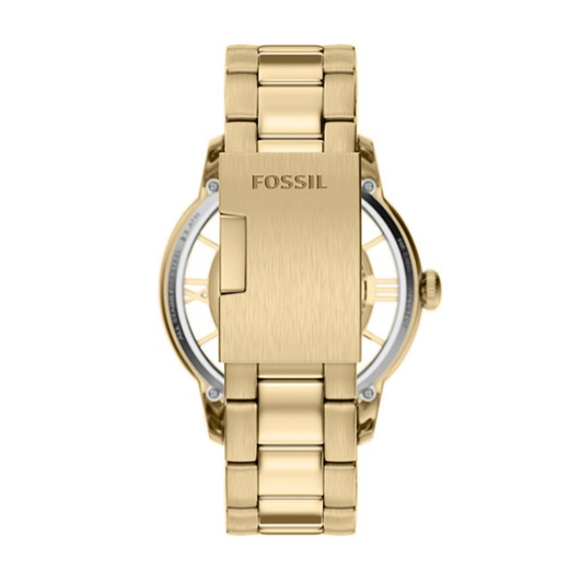 Мъжки Часовник Fossil ME3280   Fossil ME3280 от колекция Townsman e мъжки автоматичен часовник със златист кръгъл циферблат, златист корпус от неръждаема стомана с диаметър 44 mm и златиста верижка 22 mm, изработена от неръждаема стомана.