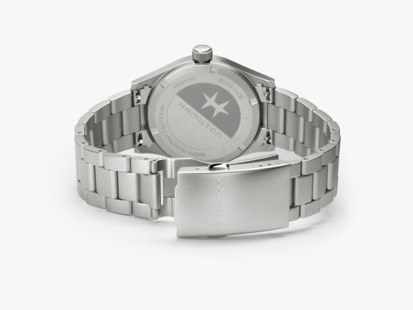 Hamilton Khaki Field Quartz 38mm е създаден за авантюристи, които ценят надеждността и издръжливостта. Вдъхновен от богатото наследство на Hamilton в прецизността и иновациите, този модел комбинира класически черен циферблат с модерен метален гривна. Кварцовият механизъм F06.105 осигурява точност и дълготрайност, докато сапфир-кристалът предпазва от надраскване. С водоустойчивост до 50 метра и корпус от неръждаема стомана, този часовник е идеален спътник за всяко приключение.