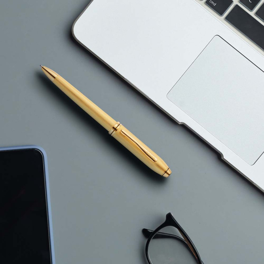 Химикалката Cross Townsend предлага елегантност на президентско ниво чрез отличителния си корпус с 23-каратово диамантено покритие и съответстващите му детайли. Този инструмент за писане е с дизайнерски елементи, вдъхновени от течението Арт Деко, напомнящи за изтънчеността на 30-те години на миналия век, което го прави предпочитан избор на американски президенти и взискателни професионалисти по целия свят. Сложният диамантен мотив на покритието улавя красиво светлината, а теглото ѝ осигурява перфектен баланс за продължително писане.
