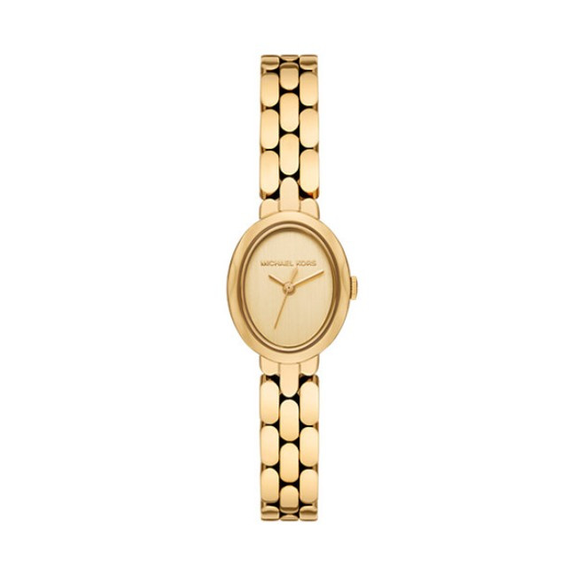 Дамски Часовник Michael Kors MK4955   Michael Kors MK4955 e дамски кварцов часовник със златист овален циферблат, златист корпус от сплав с диаметър LESS THAN 22 mm и златиста верижка 10 mm, изработена от неръждаема стомана.