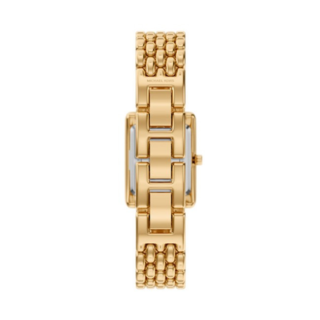 Дамски Часовник Michael Kors MK4997   Michael Kors MK4997 от колекция Essex e дамски кварцов часовник със златист правоъгълен, north-south циферблат, златист корпус от неръждаема стомана с диаметър 22 mm и златиста верижка 14 mm, изработена от неръждаема стомана.