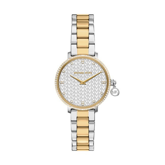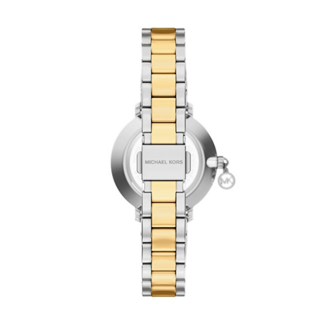 Дамски Часовник Michael Kors MK7574   Michael Kors MK7574 от колекция Pyper e дамски кварцов часовник с бял кръгъл циферблат, сребрист корпус от неръждаема стомана с диаметър 32 mm и двуцветна верижка 14 mm, изработена от неръждаема стомана.