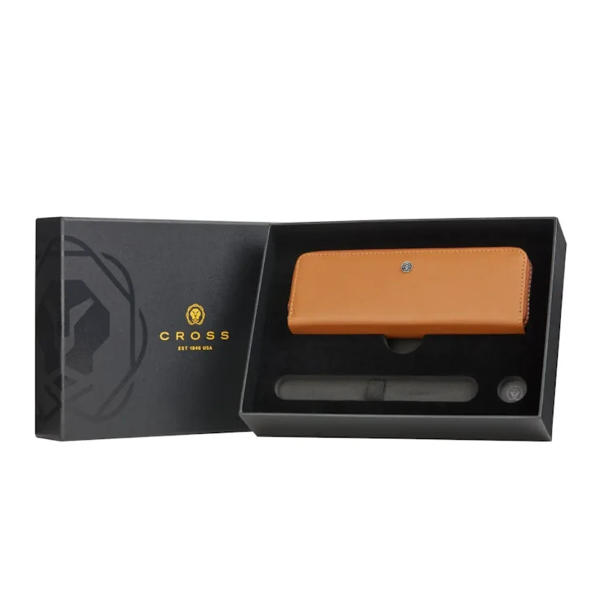 Подаръчна кутия Cross, с включен кафяв калъф за две пишещи средства