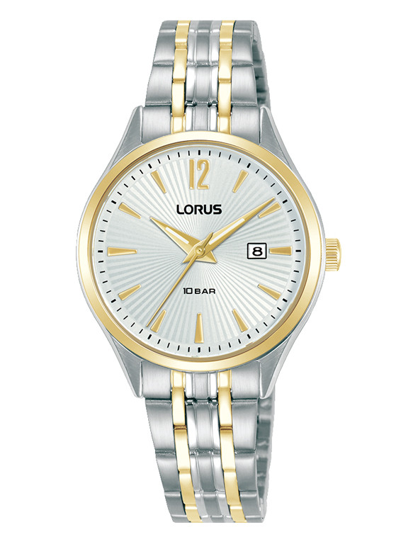 Часовник Lorus RJ202CX9 – изискан дамски класически модел, съчетаващ елегантност и функционалност. Корпусът и верижката са изработени от неръждаема стомана, като безелът и отделни елементи от верижката са с PVD покритие за допълнителен стил. Светлият циферблат е акцентиран със златисти стрелки и индекси, както и с индикация за дата на 3 часа. Минералното стъкло предпазва от надрасквания, а водоустойчивостта до 10 ATM гарантира надеждност при ежедневна употреба. Перфектен избор за жени, които ценят класическата визия с изискано модерно излъчване.