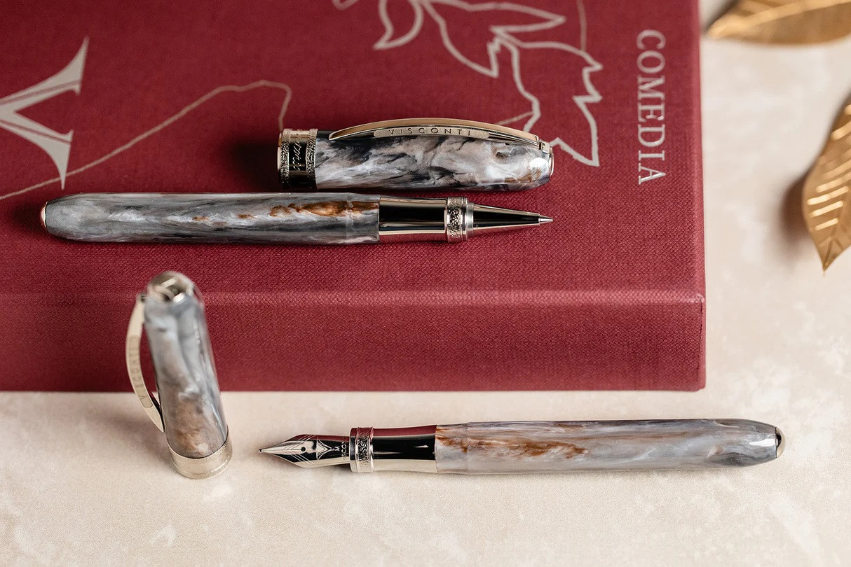 Ролер Visconti Dante Purgatorio е лимитиран модел от колекцията, вдъхновена от „Божествена комедия“ на Данте Алигиери. Изработен от сива и небесносиня смола със сребърни елементи, той символизира пречистването и надеждата. Моделът отразява пътя от мрака към светлината и съчетава класическа италианска естетика с майсторска изработка. Истинско произведение на изкуството от серията Divina, създадено във Флоренция.