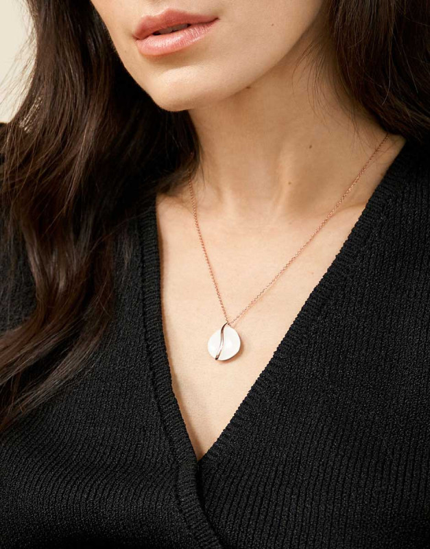 Skagen SKJ1813791 от колекция SOFIE SEA GLASS е дамско колие в розовозлатисто и бяло, изработено от неръждаема стомана и стъкло.