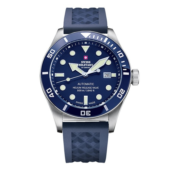 Часовник Swiss Military By Chrono SMA34075.02SET BLUE е впечатляващ швейцарски автоматичен модел, представен в елегантен сет с допълнителна синя силиконова каишка. Моделът от колекцията SMA34075 съчетава спортен дух и класическа изисканост чрез син циферблат, корпус и верижка от благородна стомана. Създаден за мъже с динамичен стил, часовникът предлага висока издръжливост, автоматичен механизъм и 5 години международна гаранция – гаранция за швейцарско качество и надеждност.