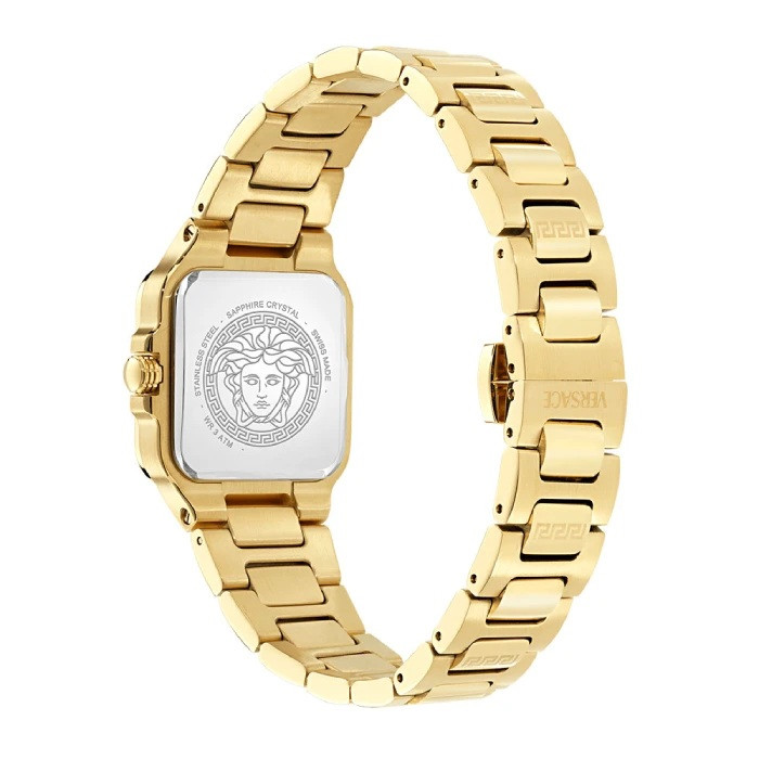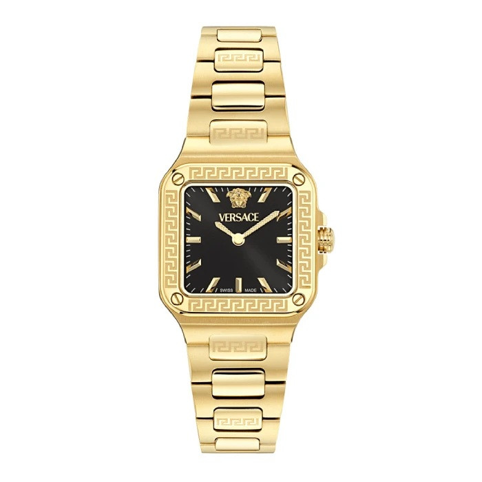 Часовник Versace VE5G00626 – Дамски елегантен модел Greca Edge с квадратен златист корпус и черен циферблат, който съчетава модерен дизайн и класическа изисканост. Отличава се със сапфир-кристал за висока устойчивост и прецизен швейцарски кварцов механизъм, гарантиращ надеждна работа. Златистата верижка с елегантна закопчалка допълва луксозното излъчване. Перфектен избор за жени, които търсят стилен аксесоар с характер и отличителна визия.