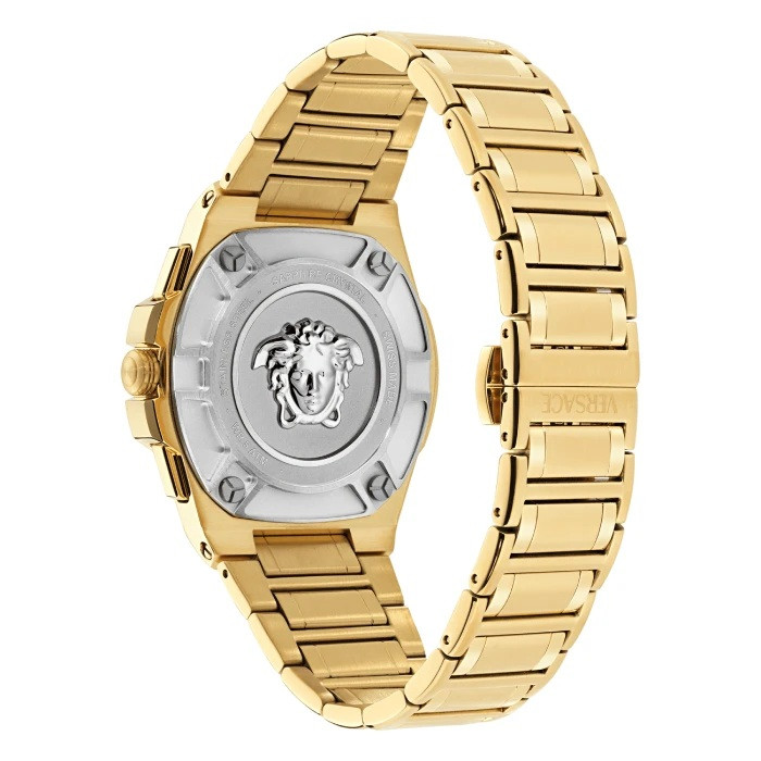 Часовник Versace VE5N00626 – Мъжки спортно-елегантен хронограф със златист корпус и циферблат, съчетаващ лукс и функционалност. Моделът се отличава със сапфир-кристал за защита от надраскване, тахиметър и луминесцентни стрелки за по-добра видимост. Задвижван от швейцарски кварцов механизъм с хронограф и водоустойчивост 5 ATM, този часовник е перфектен избор за мъже, които търсят прецизност, стил и силно присъствие във всяка ситуация.