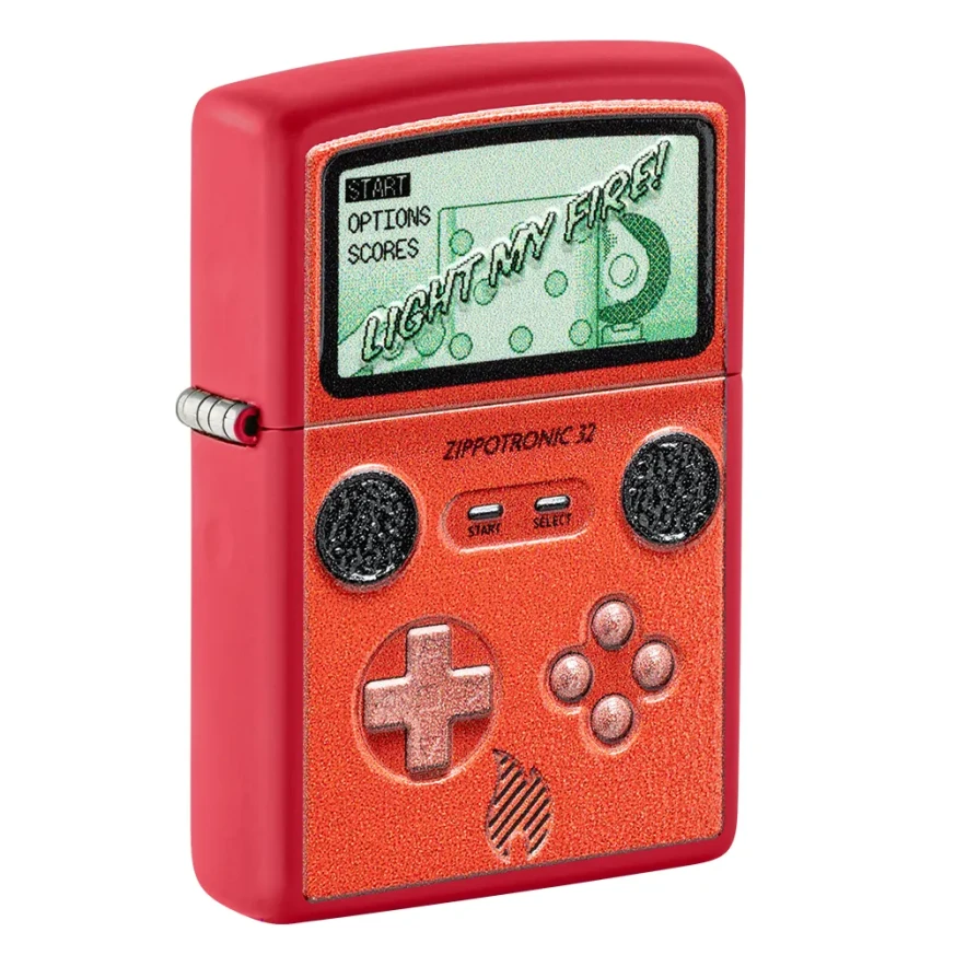 Запалката 233 Retro Design съчетава класическата конструкция на Zippo с носталгична графика, вдъхновена от дизайна на Nintendo Game Boy. Тя е предназначена за всеки почитател на конзолните игри, както и на любителите на ретро естетиката, а наситеното цветно покрития гарантира, че няма да остане незабелязана в ръцете ви.