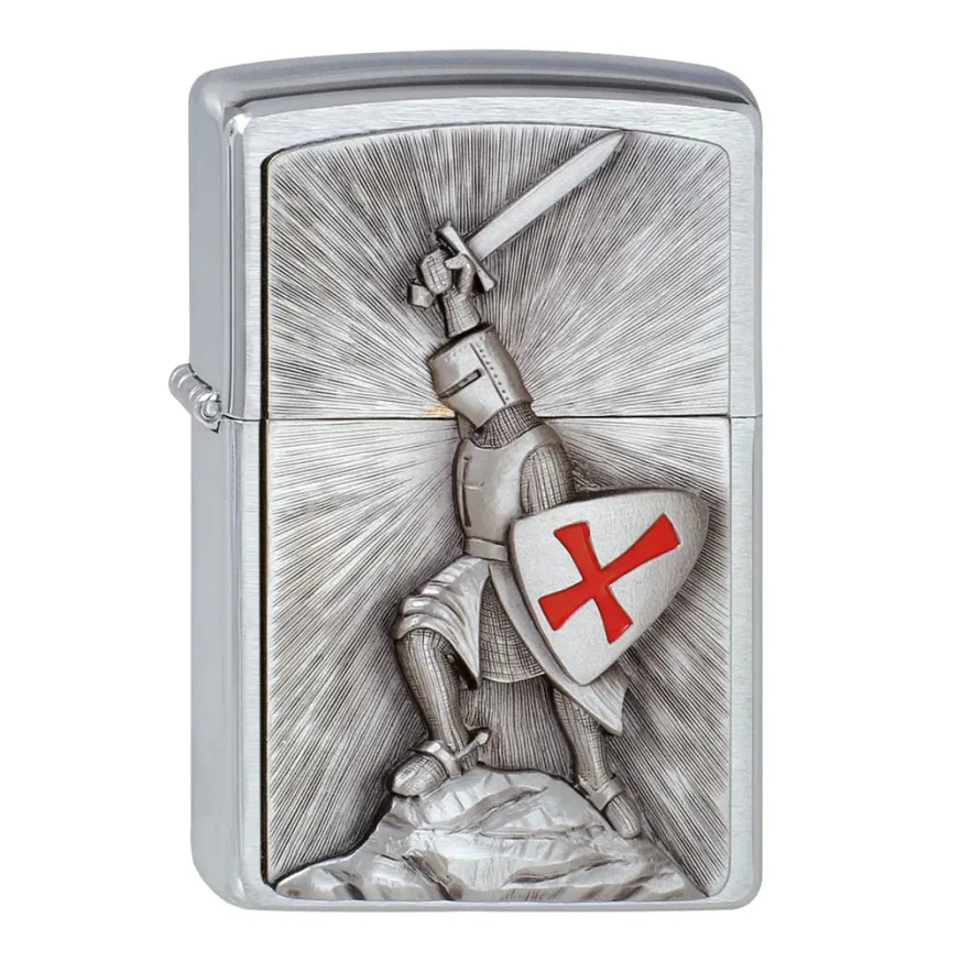 Тази запалка Zippo би била подходяща за всеки рицар: нейната привличаща вниманието емблема, прикрепена към корпуса от матиран хром, символизира вечния стремеж към доблест и доброта, а зашеметяващият триизмерен дизайн я превръща от функционален аксесоар във вещ с колекционерска стойност.
