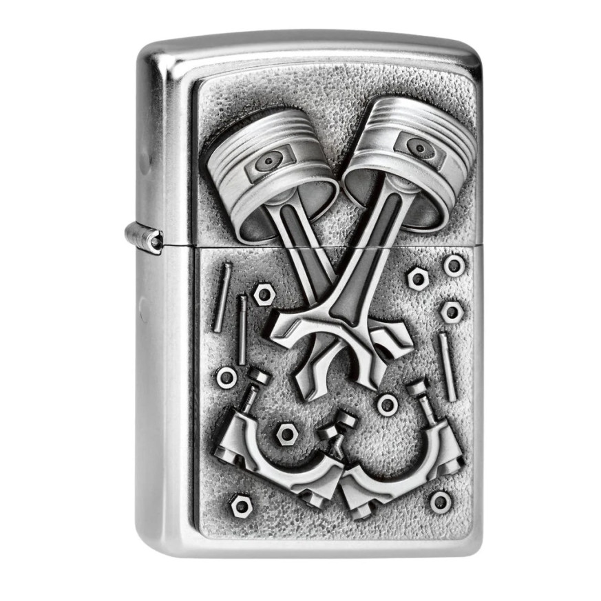 Запалката Zippo Engine Parts е уникален модел за механици и автомобилни ентусиасти. Основата Street Chrome е украсена с релефна емблема, изобразяваща части на двигателя, което придава на запалката забележителен и привличащ вниманието характер. Перфектна за тези, които ценят уникалния дизайн и висококачествената изработка.