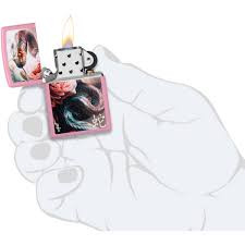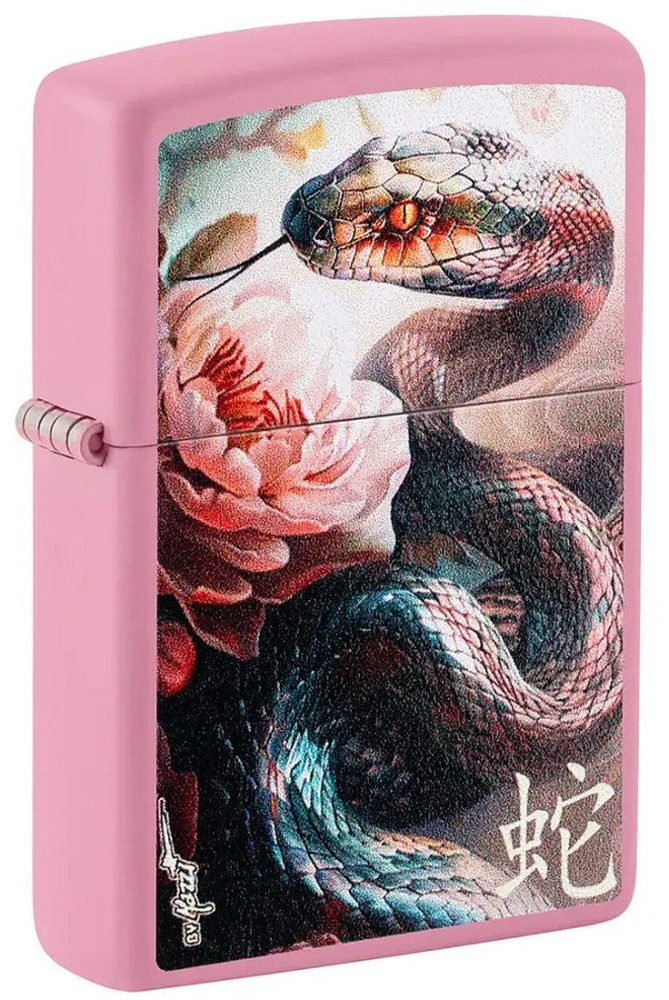 Красивото произведение на изкуството на майстора-аерограф Клаудио Маци се появява върху тази класическа запалка Zippo Pink Matte. Хипнотизиращият дизайн изобразява смъртоносна змия, увиваща се около нежен лотосов цвят. Предлага се в подаръчна кутия. За оптимална работа, използвайте само оригинален бензин Zippo.